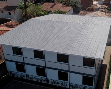 Para ambientes que exigem alta performance, temos o Painel térmico com PIR e o Painel Frigorífico, soluções ideais para indústrias, câmaras frias e projetos especiais. E para acabamento moderno e resistente, você conta com o Ripado de Aço Galvalume, que une design e robustez.